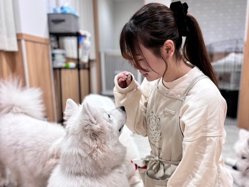 仕事内容 可愛いサモエドに囲まれながら働けるドックカフェです♪ カフェといっても、ドリンクはセルフ式で食事の提供もないため調理業務はありません! 「犬が好き」「人とコミュニケーションを取り合いながら働くのが好き」そんな方にピッタリのお仕事!ぜひご応募ください!! サモエドたちのお世話があるため、シフトは年中無休で募集しています! 朝の営業準備は子犬がある店舗は特に忙しいですが、お仕事がたくさんあるので充実した時間を過ごせます♪ バイトリーダーになった場合など、昇給あり! 具体的なお仕事内容は・・ ◆店内管理・清掃など 清掃を特に重視しています。 お客様とサモエドたちが快適に過ごせるよう、清潔な店舗作りをお願いします! ◆SNS運用 InstagramなどのSNSに力を入れています! どうしたら多くの人にお店のことを知ってもらえるか、日々考えながら取り組んでいただきたいです! ◆犬のお世話、体調管理、しつけ ◆接客 ◆お散歩 ◆来店受付(会計、流れ説明) などをお任せします! お仕事はイチから丁寧にお教えするので、未経験の方もご安心ください♪
