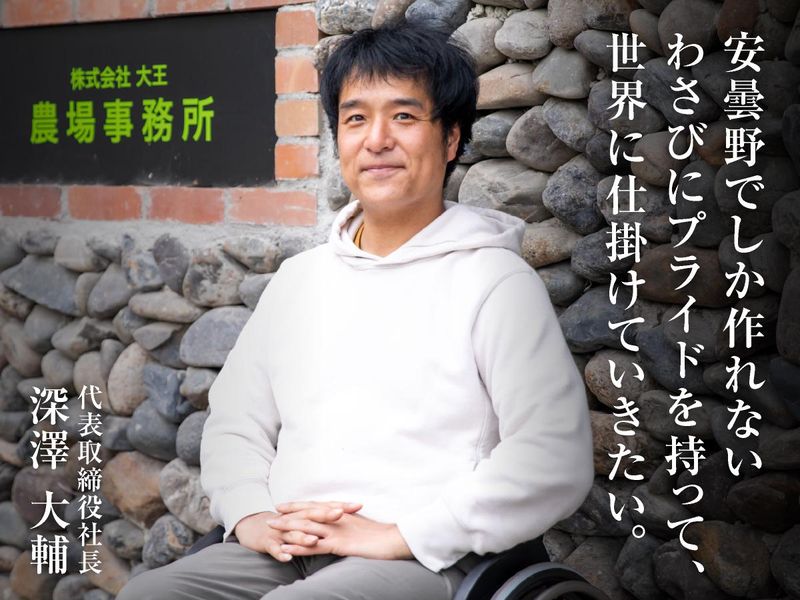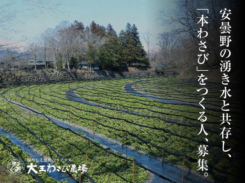 仕事内容 +++- ■全国から 「やってみたい!」と 仲間が集まるわさび農場! -+++ 満員電車もなければ、 何かに追われるような焦りもない。 安曇野の澄んだ湧き水の音を聞きながら、 わさびづくりと向き合う。 この農場での仕事に 既に全国から多くの仲間が 集まってくれています。 元デザイナー、元パティシエなど 前職も様々です。 全員が未経験。 誇りを持って、わさびづくりに向き合い、 水の流れ、土づくり、畑の構造などを 学びながら、細かな作業を 身につけてきました。 そして、収穫や出荷時の喜びを知り、 仲間たちと最高のわさびを育てる 「ものづくり」の仕事に 夢中になっています。 今回は、正社員5名の募集。 次はあなたの番です! +++- ■畑をつくるのは、 当社の花形社員たち! -+++ 「品質の良いわさび」がないと 始まらない事業です。 だから、現場で畑を作る社員は、 当社の花形です。 現場作業も大変な中、 自ら動いて日々の畑の様子や 季節の移り変わりを Instagramにアップしてくれるなど ここで誇りを持って働いてくれてることが 伝わってくるんです。 彼らが「より品質の良いわさびを!」 と頑張ってくれるから、 市の品評会で入賞することもでき、 みんなに金一封を 配ることもできました。 彼らの地道な仕事の上に いいわさびがあると 会社全体が畑を作る現場を リスペクトする風土があります。 +++- ■創業111年の歴史ある わさび農場です。 -+++ 初代が土地の開拓に奮闘し、 二代目で生産量のアップに取り組んだ。 3代目、4代目では 売店やレストランを建設し、 観光事業やわさびの商品化にも尽力。 今は、5代目社長・深澤大輔が率いて 原点回帰するように わさびづくりに力を入れています。 もともと環境や気候に左右され、 育てるのに1年以上かかり、 土地を休ませることも大事になる 「非効率な作物」です。 温暖化や湧き水の減少など 環境に左右される要素も大きい中、 安定して品質を高めるには 新しい技術やノウハウの確立が必要。 畑の整備・改良を進め、 半分の畑が新しく生まれ変わり、 生産量も100トンまで増えました。 残り半分も整備を進めれば、 200トンまで伸ばすことができます。 まだまだ努力が必要な段階なのです。 +++- ■海外でも ホンモノのわさびが 評価されている! -+++ もともと社長の深澤は、 ロンドン芸術大学に通い、 靴職人の道を歩いていた人物。 難病で車椅子生活になった折りに 家業を継ぐ予定だった兄が、 別の道に進みたい意向を聞き、 兄に代わって自分が 実家の家業を継ぐことを決断。 車椅子が必要な身体ながら フットワークが軽く、 海外の取引先開拓にも 飛び回る姿には、マスコミも注目。 ベルギーのサッカーチーム 「シントトロイデン」の スタジアム命名権を取得した際には、 多くのニュースに取り上げられました。 そこを足がかりにベルギーの ジャパンフェスに参加するなど 安曇野という土地、 わさびのという日本特有の食文化を 世界中の人に認知してもらうための 活動を広げています。 事実、お寿司・日本食のブームと共に 海外ではホンモノ志向の 高級食材としての「本わさび」が評価され 人気が高まっています。 +++- ■具体的な仕事は? -+++ ●わさび畑づくり ●わさびの栽培 ●わさびの加工 ●農場設備や機器の管理、点検 ●パートさんの管理 ◎チームで動いており、 チームリーダー、 農場課のマネージャーなど ステップアップの道もあります。 ◎わさびづくりは 畑への足の踏み入れ方も 決まっているほど、とても繊細。 機械を使わず手作業も多く、 コツコツ愛情をかけた作業を 繰り返し行うことも大切です。 手間をかけてこそ、生まれる本物の味を 私たちは知っています。 そんな老舗の誇りをかけた わさびづくりのイロハを全て伝授します。 ◎気象変動の影響で わさびづくりを取り巻く環境は 楽観できるものではありません。 環境の変化に負けない技術や品質の改良、 新しい生産管理のノウハウ開発などにも 一緒に参加してください。 目指すはわさび産業を牽引していくこと。 安曇野産わさびを守り、 広めていくことです! +++- ■みんなで作った 自慢のわさびを広めるため さらに仕掛けます! -+++ 料理研究家の横山タカ子さんと コラボして「信州の長寿ごはん」を 銀座NAGANOで提供するなど 国内外問わず、プロモーションを 仕掛けていきます。 みなさんが日々の手作業で 仕上げてくれるわさびの魅力を より広く伝えることは、 会社としての使命でもあります。 事業として同じルーチンの 繰り返しに満足せず 新しいことにもどんどん挑戦し、 チャンスと可能性を貪欲に広げていきます。 現場のあなたも興味がある活動には どんどん一緒に参加してみてください!