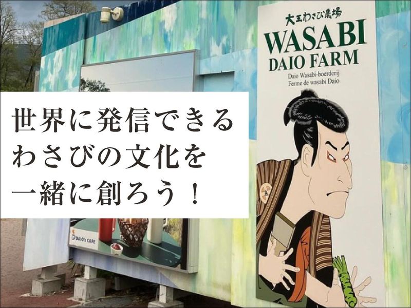 求めている人材 ★わさびづくりに挑戦したい方 ★未経験者大歓迎 ╭━━━━━━╮ 歓迎 ╰━━v━━━╯ ・自然が好き ・好奇心旺盛 ・モノづくりにチャレンジしたい ・ U/Iターン歓迎 ・現場は、女性社員も活躍中! ╭━━━━━━╮ こんな方に ╰━━v━━━╯ ・チームワーク良く働きたい ・仕事を楽しみたい ・日本一のわさび農園の仲間になりたい ・単なる作業ではなく、 想いを込めて作りたい ・自然の中でのびのび働きたい - く企業理念> わさび栽培を基本とし 新たな幸せ感動価値を 常に産み出していくため 絶えず挑戦をし続ける。 お客様のため、地域のため、仲間のため、 自身のために全力で貢献していく。 - <Vision> ~癒しと感動のオアシス大王わさび農場~ "Fresh Energy from Daio" -