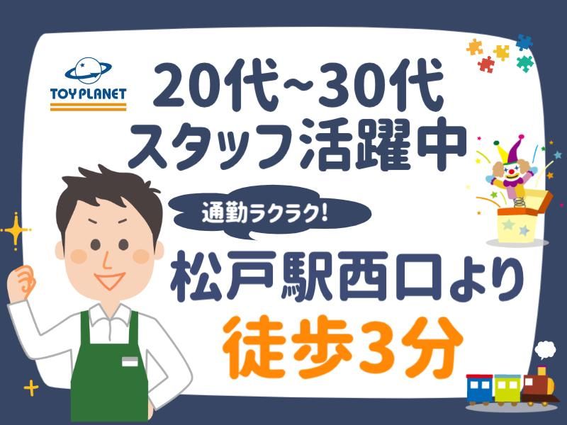 仕事内容 ⭐おもちゃに囲まれて働けるお店⭐ ゲーム・フィギュア・トレカ・ ベビー用品・ホビーなど いろいろなおもちゃを扱います! 「これ懐かしい!」 「こんなのあるんだ!」 とワクワクしながら働けます♪ 【お仕事内容】 ◆おもちゃの買取受付 ◆商品のチェック ◆おもちゃの洗浄 ◆売り場づくり、陳列 ◆レジ、接客 難しい作業はありません! ほとんどのスタッフが未経験スタートです◎ <オススメポイント> ✅週3日~OK! ✅駅徒歩3分の好立地! ✅7段階の昇格制度あり! ⭐アニメ・ゲーム・トレカ フィギュア好きのスタッフも多数活躍中! ==================== おもちゃのリサイクル「トイプラネット」 2005年に創業し、現在グループ9店舗! ====================