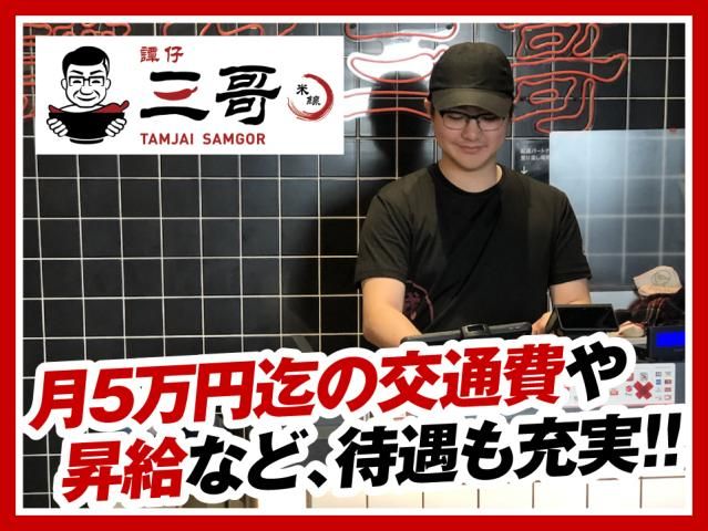 求める人材 ☆高校生OK! ・飲食店未経験の方もOK ・初バイトの方もOK ・ブランクがあってもOK ☆友達同士の応募もOK! この求人のポイント 香港で大人気のスープヌードル店でスタッフ大募集!! □未経験歓迎! □バイトデビューも丁寧にサポート! □長期で安定して働けます! □有休あります!昇給あります! 麺好きはもちろん、食べることが大好きな方、新しいことにチャレンジしたい方、大歓迎です。 短時間(1日3時間~)からOK! ※AC Nielsen HK Brand Index Tracking 2021 顧客満足度No.1 譚仔三哥(タムジャイサムゴー)は香港で人気のスープヌードル店! お米と水だけで作ったもちもちプリプリな麺の米線(ミーシェン)とスープにはたくさんのこだわりがあります! スープの種類、辛さ、トッピングをお客さまに選んでいただいて、オリジナルの1杯をお届けします◎ ■ライフスタイルに合わせてお仕事しませんか。 ■通勤も安心の交通費支給あり! うれしい1食100円のまかないなど充実の待遇をご用意しています。 20代、30代、40代、50代、60代、 学生、主婦・主夫、フリーター、中高年、シニアもみんな活躍中 皆仲が良く活気があり、楽しい職場です! 特徴 フリーター活躍中 / 学生 / 主婦(夫)活躍中 / 中高年活躍中 様々な経験をお持ちの方が活躍中 コンビニ/スーパー/アパレル販売などのレジ・接客販売 ファミレス/レストラン/居酒屋/カフェなど アルバイトやパートがはじめてという方も大歓迎 ブランド説明 譚仔三哥(タムジャイサムゴー)は香港で人気のスープヌードル店。 お米と水だけで作ったもちもちプリプリな麺の米線(ミーシェン)と6種類のスープにはたくさんのこだわりがあります。 スープの種類、辛さ、トッピングをお客さまに選んでいただいて、オリジナルの1杯をお届けします。
