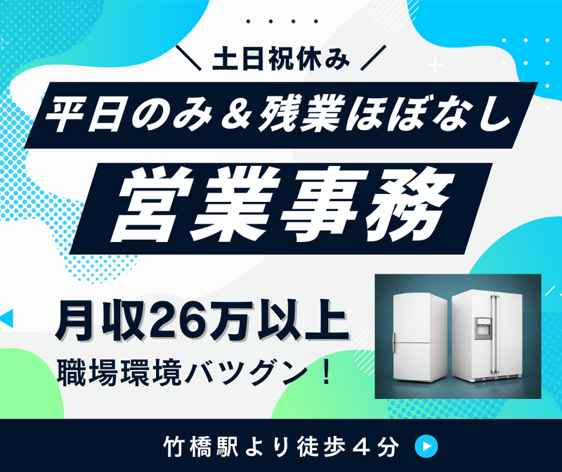 竹橋駅徒歩4分/月収26万以上/社食あり/土日祝休み/残業✖