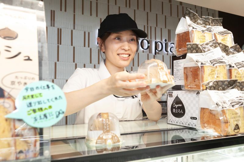 新木場駅構内にあるスイーツショップの販売スタッフ