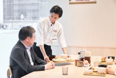 職場環境 <19歳大学生スタッフのコメント> 学業を頑張りたくて時間の融通が 利くバイトを探していました。 やよい軒は夜遅い時間まで 営業しているため、授業後で 働けることが決め手になりました。 10~50代までの幅広い年代の スタッフが活躍中!