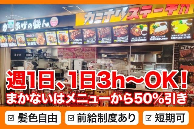 仕事情報 ● 仕事内容 ランチタイム営業の店舗にて、接客や調理補助、片付けなど、ホ ール業務とキッチン業務の両方をお任せします。接客や料理の経 験はなくても問題なし!簡単なことから少しずつお任せしていく ので、初めての方でも慣れていきやすいお仕事です。ランチタイ ム専属で働きたい方、まずはお気軽にご応募ください。 短時間・少日数ワークOK モンテローザグループでのアルバイトは、週1日〜、1日3時間〜働 けるので、短時間で働きたい方や少なめの日数でシフトに入りた いという方を歓迎します。自己申告できるため、「この日の何時 から何時まで」「毎週この曜日に働きたい」など、まずはご希望 をお聞かせください!あなたが働きやすい日程で希望できます。 扶養控除内での勤務OK モンテローザグループのアルバイトは短時間・少日数でシフト希 望を出せるからこそ、扶養内で働くことも可能です。自己申告で きるシフトで、扶養内で収まるようにシフトを調整することもで きるので、まずはお気軽にご相談ください!学生さんや主婦(主 夫)さんなど、それぞれに合った働き方ができるのが魅力です。 からあげの鉄人 モンテローザグループが運営する「からあげの鉄人」。“秘伝の たれ”が味の決め手となっているBIGからあげは、冷めても美味 しいのが特徴です。店内ではボリューム満点の定食やどんぶりメ ニューから選ぶことができ、テイクアウトメニューも充実。単品 やドリンクもあるので、ちょい飲みにもぴったりのお店です。 モンテローザグループ 1983年に創業したモンテローザグループは、飲食事業の運営と管 理をおこなう会社です。居楽屋「白木屋」やのみくい処「魚民」 、居楽屋「笑笑」、個室空間「千年の宴」など、全国に850店舗 以上を展開。外食チェーンのパイオニアとして、お客さま第一主義の店舗作りをしてまいります。