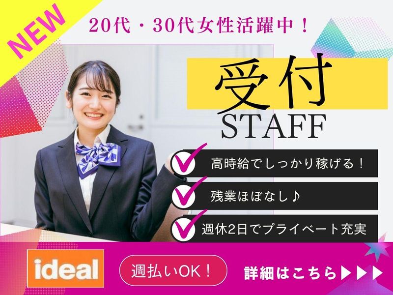 仕事内容 ◆・。――――◇・・◇――――。・◆ ✨未経験OK✨ 基本座り仕事だからラクラク♪ ◆・。――――◇・・◇――――。・◆ / 20代・30代・40代活躍中! \ ⭐安心安定の輸入車の正規ディーラーで 受付と、簡単なPC作業をお願いします♪ ✅お客様のお出迎え・お茶出し ✅PCへの簡単なデータ入力 (基本スキルがあればOK!) ✅電話対応 ✦・┈┈┈┈ ・✦✦・┈┈┈┈ ・✦ ✨このお仕事のPOINT✨ ✦・┈┈┈┈ ・✦✦・┈┈┈┈ ・✦ ⛅月+他1日休み&18:00定時で 就業後のプライベート時間も充実! 月曜休みがベースなので、 旅行なども比較的安価&混雑を避けて お出かけができるとスタッフに好評♪ 残業もほとんどないのでアフター6充実☕ ⛅未経験・ブランクがある方も歓迎! 難しい内容はないから事務の経験が 浅くても大丈夫です⚪ 「子育てが落ち着いたので」 「家計の足しに」 も大歓迎! ⛅便利な週払い制度あり! 「急なお誘いでお小遣いがピンチ」 「思わぬ出費が発生してしまった」 「家電製品が壊れてしまった」 そんな日常のピンチも週払いで解決⭐ 気軽にご利用ください✨ ✦・┈┈┈┈ ・✦✦・┈┈┈┈ ・✦ ✨理想のワークスタイルを実現✨ ✦・┈┈┈┈ ・✦✦・┈┈┈┈ ・✦ あなたの様々な希望を可能な限り実現! 働き方や環境に関してもご相談ください☆ ✋「短期がイイ」「長期がイイ」 ✋日払いは無理でも、せめて週払いを! ✋駅チカの好立地で働きたい! ✋期間限定での勤務を考えている! ✋残業ナシの環境で働きたい! ✋勤務日数相談可能な仕事がイイ! ✋負担の少ない日勤のみがイイ! ✋週休2日制で無理なく働きたい! etc...まずは希望を教えてくださいね◎ 学歴不問!ブランクOK!スキル不要! フォロー体制も充実しています。 勤務開始日相談可能!即日勤務もOK! ノルマなしで長期安定勤務も叶います。