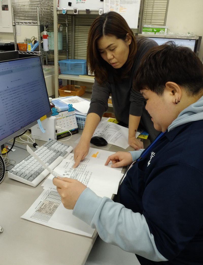 職場環境 事務スタッフ同士はもちろん 営業さんとも距離が近く 「この注文内容で大丈夫かな?」 「この案件、先に確認しておきますね」 そんな声を掛け合いながら 日々スムーズに業務を進めています。 分からない事もすぐに相談できるので 安心して仕事に慣れていける環境です。