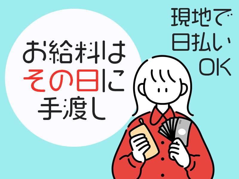 【保険制度】 雇用保険、労災保険 待遇・福利厚生 ※適用されない社会保険がある理由:法令に則り適用 【福利厚生】 ◆現場日払いOK ◆服装自由 ◆履歴書不要