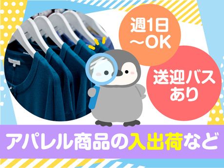 仕事内容 アパレル商品(セレクトショップ)の入出荷・ピッキング 有名セレクトショップの 商品を取り扱うお仕事♪ …………………………… コツコツ&モクモク軽作業! 難しい作業はありません! 安心してスタート可能◎ 具体的には・・・ ◎「入荷」商品を受け取り、検品して倉庫に整理・保管 ◎「出荷」注文に合わせて商品を梱包・確認 ◎「ピッキング」出荷指示に基づき商品を倉庫から集める モクモク作業が得意な方にオススメ♪ 即スタートも可能! 初めての方でもすぐに覚えられます! わからないことは先輩staffが 丁寧にサポートするので安心して下さいね♪ ★☆ 短期・長期歓迎 ☆★ ●働き方は自由自在! ●スキマ時間や空いている日を有効活用できる! ●平日だけ、土日だけもOK! ●週1日~OK ●単発OK ━━━━━━━ ★こんな方に★ ━━━━━━━ ■長期休暇に自由にお金を使いたい! ■週末の飲み会に向けてお金が欲しい ■会話少なめで簡単な仕事が欲しい など ★☆嬉しいメリットを教えてください!☆★ 【1】日払いOK 「急な出費のときに本当に助かる…」 「欲しいものがすぐに買えます♪」 「遊ぶ予定の前にサクッと稼いでます!」 【2】短期OK 「長期休みのときだけ働いてます!」 「次の仕事が決まるまでの"繋ぎ"で」 「季節限定のオシゴトだけ♪」 ★☆ スタッフの声 ☆★ 「家庭と両立して働けています。 子育てが落ち着いたらもう少し シフトを増やしてみようかな!」 「アルバイトをしていたけど 急にシフトに入れなくなって 困っていたときに応募しました!」 みなさん、学校・家庭・他のお仕事など と上手に両立しながら働いていますよ♪
