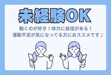仕事内容 【Amazon石川でのかんたん作業】 ●週4日~無理なく働ける! プライベートとも両立 ●倉庫とは思えないキレイな建物! 空調完備で快適に働けます♪ ●シンプル×覚えやすい×単純作業だから 未経験の方も安心◎ 【お任せするお仕事は…】 大手ネット通販サイト「アマゾン」の 物流倉庫内で入出荷業務や 商品の在庫管理業務をお任せします。 働きながら最近の流行もキャッチできるので 楽しくお仕事できますよ! <お仕事例> 【入荷作業】例:倉庫内作業 1.受け取ったダンボールをカッターで開梱 2.中の商品を取り出して、専用の台車へ『ポンッ♪』と積み替え 3.荷受けした荷物を台車で各エリアへ搬送 4.表示に沿って運ぶだけなので、迷う心配ナシ! 5.所定の場所に置いて完了! シンプルな軽作業なので 未経験でもスグできる簡単なお仕事です! <1日の流れ(一例)> 出勤 → 点呼・準備 → 作業スタート → 途中で10分程度の小休憩 → お昼休憩 → 午後の作業 → 終了前に片付け・引き継ぎ → 業務終了!お疲れさまでした♪ 身体を動かしながら、 チームでコツコツ進めるお仕事です◎ 作業スピードよりも“正確さ”を 重視しているので未経験も安心♪ 【当社のフォロー体制をご紹介!】 *入社直後はトレーニングあり! 作業手順はマニュアル化されており、 1~2週間ほどの研修でスグ慣れます! *困ったときはすぐ相談できる環境! 未経験スタートが9割以上! チームワークも良く、安心して働けます。 「今すぐ働きたい!」 「春までに稼ぎたい!」 「安定した環境で長期で働きたい」 そんな方もぜひご応募を!