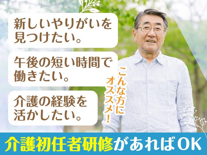 求めている人材 ◎経験・資格問いません ◎定年退職後のセカンドキャリアを考えている方歓迎! ◎未経験歓迎!経験者歓迎!ブランクOK! ◎シニア応援!フリーター歓迎! ◎以下の経験が活かせます ・グループホーム ・デイサービス ・訪問介護/訪問入浴 ・有料老人ホーム ・特別養護老人ホーム 【活かせる資格】 介護福祉士/社会福祉士/実務者研修修了者/理学療法士/介護支援専門員/普通自動車免許 など