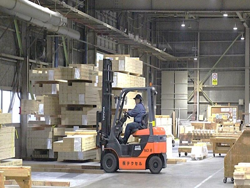 住宅資材工場での木材加工スタッフ
