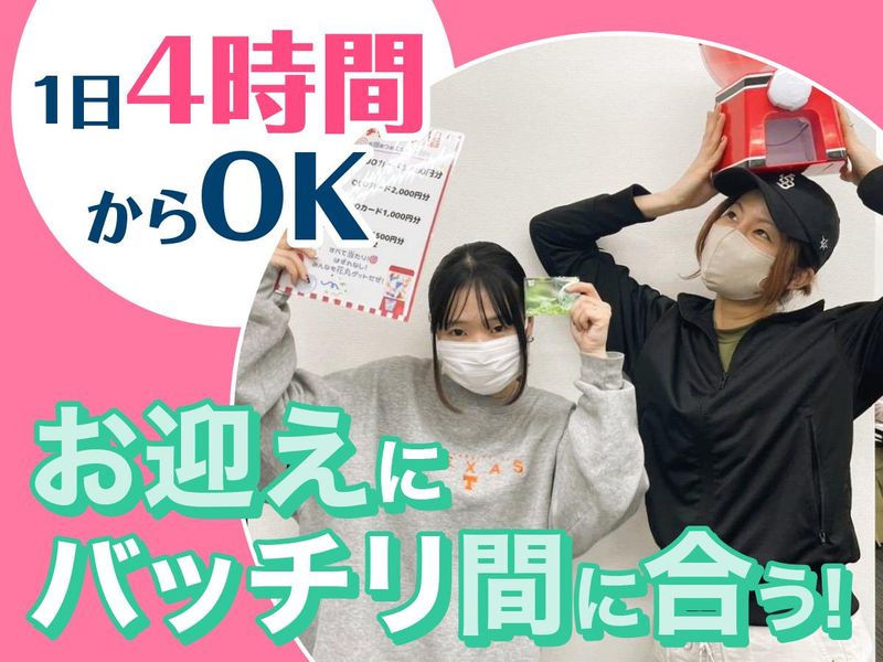 シフト制 勤務時間詳細 ⏰9:00~18:00 ⭐週3日~OK! ⭐1日3時間~OK! ⌚休憩スタイル選べます!  ̄ ̄ ̄ ̄ ̄ ̄ ̄ ̄ ̄ ̄ ̄ ̄ ̄ ̄ 「集中して短時間で働きたい」も 「しっかり休憩をとりながら 長めに働きたい」もどちらもOK! 以下のように、勤務スタイルに 応じて休憩の取り方を選べます。 ▼お昼休憩なし(計70分/7時間50分勤務)  ̄ ̄ ̄ ̄ ̄ ̄ ̄ ̄ ̄ ̄ ̄ ̄ ̄ ̄ ̄ ̄ ̄ ̄ ̄ 10:20~10:30 12:00~12:10 13:00~13:10 14:00~14:10 15:00~15:10 16:00~16:10 17:00~17:10 ▼お昼休憩あり(計120分/7時間10分勤務)  ̄ ̄ ̄ ̄ ̄ ̄ ̄ ̄ ̄ ̄ ̄ ̄ ̄ ̄ ̄ ̄ ̄ ̄ ̄ 10:20~10:30 12:00~13:00(昼休憩) 13:00~13:10 14:00~14:10 15:00~15:10 16:00~16:10 17:00~17:10 どちらも選択可能なので、 自分の集中力や働き方に合わせて 調整できます! 「短時間で効率よく」 「ゆとりを持って1日しっかり」 …あなたらしい働き方を応援します♪