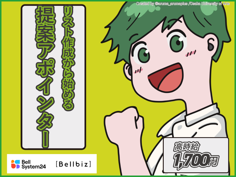 仕事内容 自分の工夫と努力が成果に直結! 中小企業向け自社サービスの提案アポインターを募集 あなたの「電話対応力」と「工夫する力」を、もっと評価される環境で活かしませんか? 【仕事内容】 中小企業向けに自社インターネットサービスの提案アポイントを取るお仕事です。 ・インターネットで企業情報を調査し、自分で架電リストを作成 ・リストに基づき電話でアポイントを獲得し、商談は営業担当へバトンタッチ ・原則は発信業務ですが、ご自身が架電したお客様からの折り返し電話の対応も一部発生 ・PCへ架電履歴に入力 【この仕事の魅力】 ◎渋谷駅近くの快適オフィス!無料ランチ・カフェあり(上限あり) ◎高時給+目標達成でインセンティブ支給 ◎社内表彰制度あり ◎自分でリスト作成からアプローチまで担当できるので、工夫次第で高実績も可能! ぜひ、あなたの経験とチャレンジ精神を私たちのチームで存分に発揮してください。ご応募お待ちしています! ワクワクできる、だから前にすすめる。 コールセンターのお仕事探しならベルシステム24にお任せ! Bellbiz東京(仕事№/001-84464)