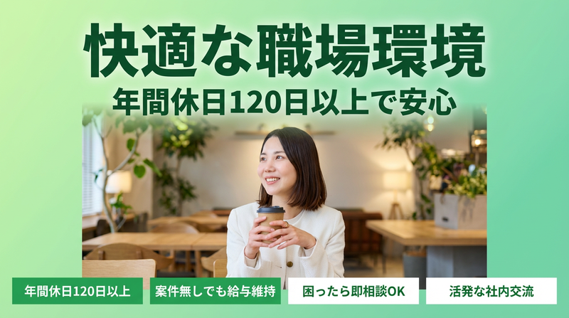 職場環境 20代の若手メンバーが中心となって活躍する、明るく活気のある職場です。 現場ではチームワークを大切にしており、困ったときにはすぐに相談できるフラットな雰囲気。 入社後は先輩がマンツーマンでサポートするので、業界未経験でも安心してスタートできます。 喫煙所:喫煙所あり(屋外)