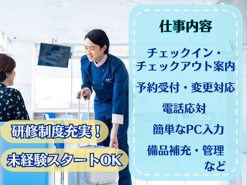 仕事内容 \\\こんな毎日が、現実になる/// ⏩退勤後にそのまま弾丸海外旅行 ⏩平日の混雑していないアウトレットでショッピング ⏩好きなアーティストのライブは全日程制覇! オフの日は、誰にも邪魔されず、とことん“好き”に没頭 そんなライフスタイルを叶えながら、 ちゃんと正社員として働ける環境がここにあります。 ――――――――――――――――――――――――― ✅お任せするのは… ■宿泊予約の受付・変更(電話・Web) ■チェックイン/チェックアウト対応 ※自動チェックイン機の操作案内が中心 ■備品・アメニティの準備・発注 ■ロビー・館内の巡回、簡単な清掃 ■売上入力・日報作成(PC作業) 【POINT】 ✅ 翻訳機があるので語学力不問 ✅ 経験不問/ブランクOK ✅ 座学+OJT研修あり/現場は常時2名体制で安心 ――――――――――――――――――――――――― ▼1週間とあるスケジュール(例) 月曜10:30〜火曜11:30:勤務 火曜午後〜木曜:完全フリー 金曜10:30〜土曜11:30:勤務 土曜午後〜月曜:完全フリー →「え?こんなに休みがあるの?」と思った方。 はい、本当です。 年間休日169日が “あなたの時間”になります。