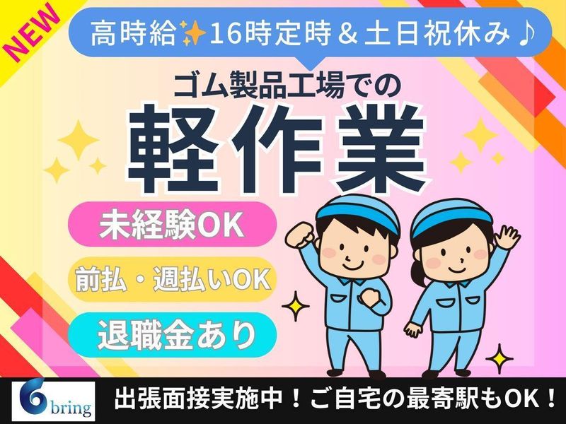 仕事内容 ◤ ̄ ̄ ̄ ̄ ̄ ̄ ̄ ̄ ̄ ̄ ̄ ̄ ̄◥ ✨土日祝休み+長期休暇あり! ✨未経験スタートの方多数活躍中! ◣_____________◢ ■未経験スタートの方が多数活躍中! ■シンプルでカンタンな繰り返し作業♪ ■16時までの勤務で夕方の時間を有効活用◎ ■プライベート充実♪ 土日祝休み+長期休暇あり! ■20~50代男性スタッフが元気に活躍中☆ ╭━━━━━━━━━╮ ⏬仕事内容はこちら⏬ ╰━━━━v━━━━╯ タイヤ用ゴム製品を製造している 工場でのお仕事です✨ ✅ タイヤの原料となる カーボンを袋に詰める作業 ✅ 袋詰めしたカーボンを パレットへ積み上げる作業 ✅ 原料を大きな紙袋に充填する作業 ☆シンプルな繰り返し作業で、 すぐに覚えられます♪ ☆重量物を扱う作業もあり、 体を動かすのが好きな方にピッタリ! ◌◍┈┈┈┈┈┈┈┈┈┈┈┈┈┈⿻*.· ╭━━━━━━━━━━━━╮ ⛅働きやすさのPOINT⛅ ╰━━━━━━v━━━━━╯ ⭐土日祝休み❗ 完全週休2日制でメリハリ勤務! 予定が立てやすいとスタッフから好評! ⭐16時退社で私生活充実 16時までなので無理なく働ける環境❗❗ 残業も殆ど無いのでプライベートを 充実させる事が可能です♪ ⭐前払い・週払いOK❗ 急なお誘いや予期せぬ出費にも 役立つ、スタッフに大好評の制度です♪ ⭐お友達紹介制度あり❗ 紹介したご友人が入社した際に 紹介者に5万円をプレゼント❗✨ ⭐来社なし♪応募~内定まで自宅で完結❗ オンライン面接だから、ラクラク☘ ★入社前に必ず職場見学があるので安心! ╭────────────・⭐・・─╮ .電話番号 ▶▶ 029-869-5900 .お気軽にお問い合わせください♪ ╰─・・⭐・────────────╯
