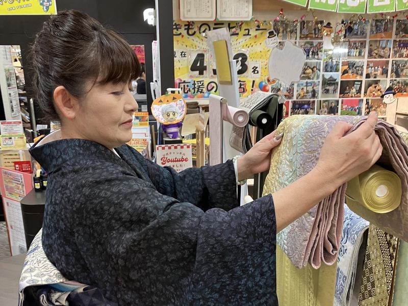 求めている人材 ○未経験歓迎  ̄ ̄ ̄ ̄ ̄ ̄ ̄ ○接客や販売スキル不問  ̄ ̄ ̄ ̄ ̄ ̄ ̄ ̄ ̄ ̄ ̄ ○ブランクありOK  ̄ ̄ ̄ ̄ ̄ ̄ ̄ ̄ ̄ ̄ ○主婦(夫)さん大歓迎 30代~50代女性が活躍中!  ̄ ̄ ̄ ̄ ̄ ̄ ̄ ̄ ̄ ̄ ̄ ̄ ̄ ̄ 人柄重視の採用を実施しています! お気軽にチャレンジしてください✨ \一歩踏み出したいあなたを応援します/ ⭐着物や和雑貨が好き ⭐人と接すること、お話が好き ⭐思いやりを大切にしたい ⭐家庭と両立しながら働きたい ⭐久しぶりに仕事復帰をしたい ⭐喜びややりがいのある仕事がしたい 業界問わず、接客経験や アパレル・ファッション、雑貨など 販売や接客の経験がある方は、 スキルや経験を活かして活躍できます♪ ▼スタッフインタビュー ━━━━━━━━━━━━ 接客業ははじめてでしたが、 着物に興味があり応募しました。 常連さんとのお喋りも楽しくて、 毎日ワクワクしながら働いています。 一番のやりがいは、 着方レッスンやイベントを通して お客様と一緒に着物の楽しさや喜びを 分かち合えることです。 気軽にふらっと立ち寄りやすいお店 だからこそ、お客様とも コミュニケーションも取りやすく、 楽しく仕事ができていると感じます! 一緒に着物の魅力や楽しさを伝えませんか? \ あなたの応募を待っています♪ / ――――――――――――――――