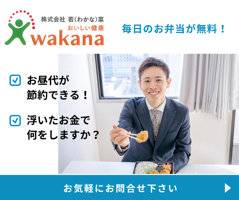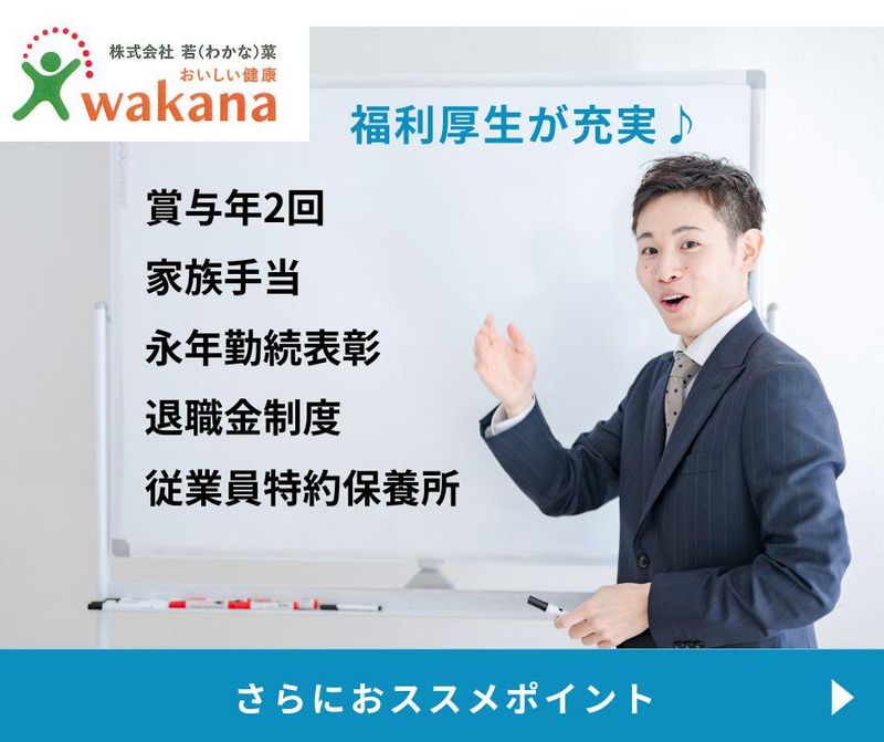 仕事内容 \普通免許でOK!未経験から正社員営業へ!/ 「人と話すのが好き」 そんなあなたにピッタリ! ◆ノルマなし ◆お弁当毎日無料♪ ◆営業未経験でも安心のスタート! ◆残業少なめでプライベート充実! ◆安定企業で正社員として長く働ける! 【仕事内容】 「お弁当・社員食堂サービスのご提案」 があなたの仕事。 既存のお客様のフォローや、 ニーズのある法人企業へ訪問し、 当社のサービスをご紹介します。 ▼営業未経験でも大丈夫! 先輩と一緒に盛り付け作業や 事務処理をしながら、 商品や現場を理解していけます。 「売る」のではなく 「ご案内する」営業スタイルです! 場合によって配達の業務もあります。 営業未経験など異業種から転職した 30~40代の男性が活躍中です。 <若菜を紹介> ■毎日に欠かせない「食」に関わるお仕事■ 昭和55年の創業以来、若菜は埼玉県で、 給食事業・弁当事業において 地域No1を目指しています。 現在ではお弁当と事業所・メディカル給食で、 1日5万人のお客様に ご利用いただいております。 これからも地元に愛され、 必要とされる会社となるように 更なる挑戦を続けていきます。 今回は本庄センターで 【仕出し弁当の法人営業】を募集します。 お弁当や社員食堂のご契約を頂くお仕事です。 (顧客管理・新規開拓・配送) 就業や職務経験は不問。 営業にチャレンジしたい方大歓迎♪ センター長をはじめ、先輩スタッフが 丁寧に仕事を教えますので安心して下さい。