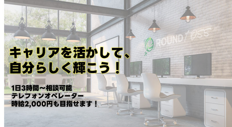 求めている人材 キャリアを積むには、都市で働くしかない。そんな常識を、ROUNDTOSSは変えたいと考えています。 家庭や住む場所の事情があっても、本来の力を発揮し、成長できる環境をつくる。 それが、私たちが完全在宅にこだわる理由です。 住む場所に縛られず、キャリアを築きたい方。あなたの挑戦を、心からお待ちしています。 ■必須条件 ・電話できる環境でお仕事出来る方 ・基本的なPC操作スキル(Googleスプレッドシート等) ■求める人物像 ・不動産業界に興味がある方 ・お客様とお話をするのが好きな方 ・スキルアップなど向上心を持って働ける方 ・新しいことにチャレンジしたい方 <歓迎スキル・経験> ・業界問わずコールオペレーターの経験をお持ちの方 ・不動産業界で勤務経験をお持ちの方 ・アウトバンドコールのオペレーター経験をお持ちの方 <このような方にピッタリです> ・在宅でも成長できる仕事を探している ・家庭やライフスタイルと両立しながら働きたい ・将来はリーダー・管理職を目指したい ・チームで協力しながら成果を出すことが好き ・これまでの経験を、次のキャリアにつなげたい ※30〜40代の女性スタッフも多数活躍中です