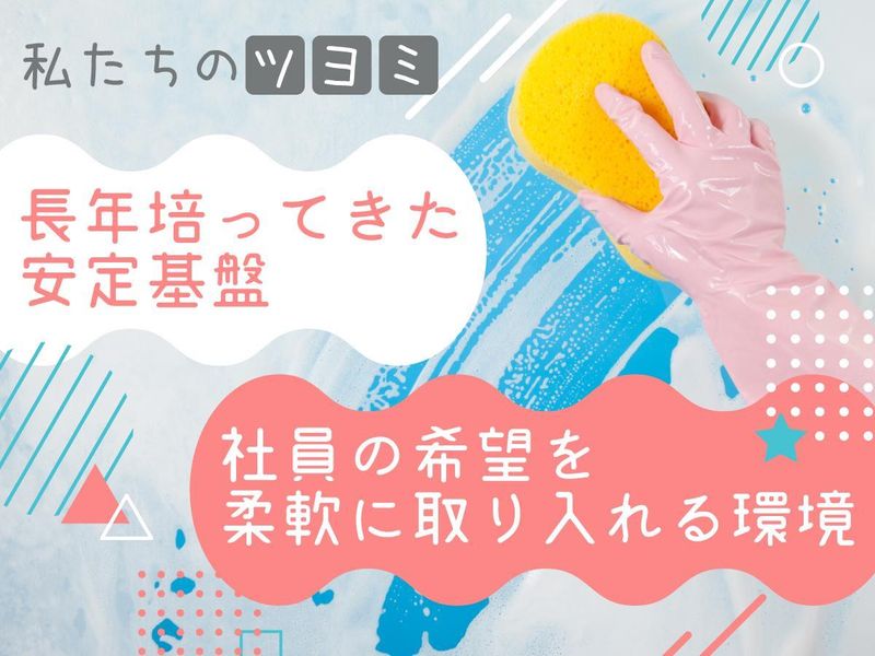 仕事内容 オフィスや商業施設などビルの清掃サービスをメインに展開する当社で清掃スタッフさんたちのマネジメント業務をお任せします。 一緒に働くのはミドルシニア層の方がほとんどです。 まずはご近所さんのような関係性を作っていき、スタッフさんの配置やシフト調整を行うポジションです。 ★最初の1年半は準備期間! 現場のこと、スタッフさんのこと、清掃という仕事の楽しさ…ひとつひとつ教えます! ※ご経験やご希望に応じて短縮有 ★どんどんキャリアアップしていける環境です◎ 《 知られざる、清掃の魅力 》 やはりいちばんの魅力は…「気持ちいい!!」 プロ仕様の道具を使って清掃をすると、驚くほどピカピカになり爽快感抜群。 比較的早く仕事が終わるので、明るい時間からプライベートタイムがスタート! 1日が長く感じられ、充実させることができますよ。 新しい現場に出向くときは、知らない街を冒険するワクワク感もあり。 実は、日々変化があり新鮮な気持ちで取り組めるお仕事なのです◎ 《 オフィスや商業施設の清掃と聞いてどんな印象を持ちますか? 》 「地味な仕事」「淡々としている」なんてイメージがある方も多いのではないでしょうか。 しかし、一度経験してみるとイメージが変わると思います。 担当するビルや施設ごとに、何時に・何をするか…そのフロアを利用する人の要望があり私たちに求められることがある。 繰り返し作業をしていくと、何を求めらられているかが細かくわかるようになってきます。 手掛けるたびに愛着も増してきて「ここも気になるな…」と新しい視点が持てるように! それをお客様に提案することで喜んでいただけるうえに売上げにも繋がるんです! そんな風に楽しみながら成長してきた当社で次世代を担ってくれる方を大募集! まずは“清掃の面白さ”から教えるので気軽にご応募くださね! 《 社長より 》 この業界に足を踏み入れたきっかけは、知人に頼まれて施設のワックスがけを手伝ったこと。 作業が終了し、全体を見渡した時に「こんなにキレイに変わるんだ…!」と感動したことを覚えています。 それ以来すっかりこの仕事のトリコ。 気付けば社長にまでなっていました(笑)あなたにもこの面白さ、知ってもらいたいな~!