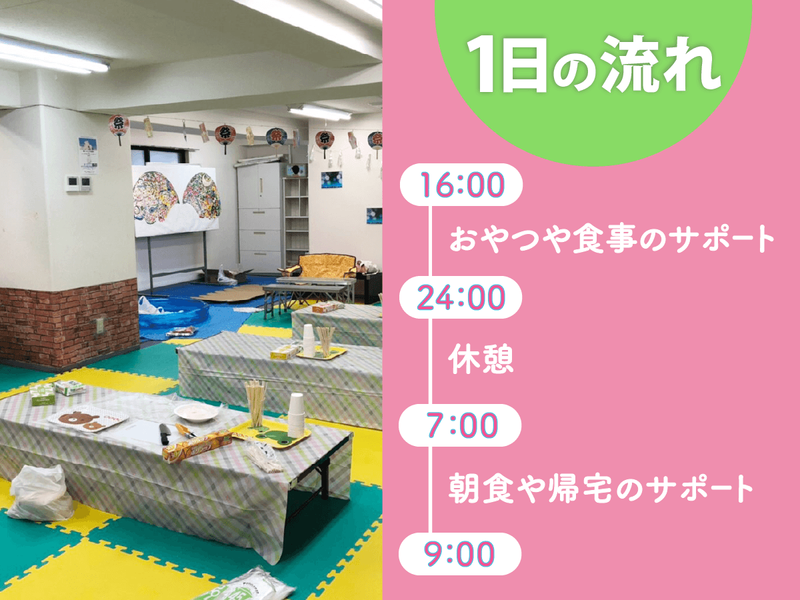 勤務時間詳細 実働時間:1日あたり11時間 平均勤務日数:1ヶ月あたり4日 〜 20日 16:00~33:00(翌9:00) ※0:00~6:00に休憩あり ✅週1日~勤務OK ✅実働11時間/休憩6時間 ✅残業ほぼなし
