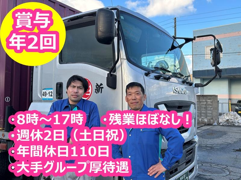 【週休2日/土日祝休み/年間休日110日/8時~17時/残業ほぼなし/片道30分程度/東区~聖籠メインのルート配送/1日4件程度/入社月から有給付与/賞与年2回】大手グループで長期安定して働けます!入社日相談OK