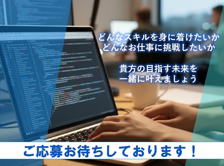 求めている人材 【学歴不問・未経験歓迎】◎業界職種未経験歓迎◎第二新卒歓迎・学歴不問◎ブランクOK ⭐ 必須条件 ───────────── ~44歳までの方(キャリア形成の為) ITエンジニアとして成長したいという強い意欲をお持ちの方 ⭐ 歓迎条件 ───────────── 基本情報技術者、ITパスポートなどのIT系資格をお持ちの方 プログラミング学習経験のある方 経験者の方は、即戦力として優遇します。 ⭐ 求める人物像 ────────────── ◆新しいことへのチャレンジ精神をお持ちの方 ◆分からないことを素直に質問・相談できる方 ◆チームでの協調性を大切にできる方 ◆自由な働き方を目指していきたい方 ◆コミュニケーションを取ることが好きな方 ◆エンジニアのプロとして活躍していきたい方