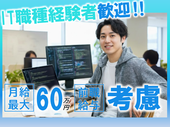 【未経験歓迎】ゼロから始めるITエンジニア★前職給与考慮