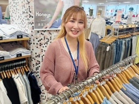 仕事内容 詳細 ハニーズ(Honeys)店舗でのレディスアパレルの販売・接客・ご案内です。 お客様のお買い物のお手伝いをします。 商品整理・ディスプレイの変更・レジ業務などもお願いします。 未経験者も活躍中です!! 服装・髪色自由! ハニーズ以外の服装でも勤務OK!ネイルもOKです! お気に入りのコーデで楽しく働きましょう!! 個人ノルマはありません! お客様に寄り添った接客ができるよう、 ハニーズは個人の売り上げノルマがありません。 正社員登用制度あり 年齢や学歴にかかわらず、やる気を持って自身の成長を求め続ける人を応援します。 未経験で短期アルバイト・パートとして入社後、正社員となって長期で活躍しているスタッフもたくさんいます。 学生アルバイトや主婦(夫)パート・主婦(夫)アルバイトの方も活躍中です! 企業理念をお客様のもとへ 「高感度・高品質・リーズナブルプライス」をコンセプトとした 商品を多くの方に楽しんでいただけるよう、一緒にステキなお店 を作りましょう。