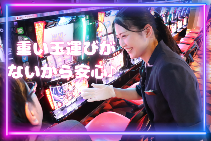 仕事内容 <パチンコ・スロット経験不要!> パチンコの専門知識はなくてOK! 「パチンコ店に入ったことがなかった」先輩も多数活躍中! マニュアル&サポート体制完備で、 未経験でも安心してスタートできます! ⭐具体的な仕事内容 まずはできることからお任せします◎ ●店内のご案内 席の場所・設備の案内など、 簡単な接客対応です。 ●カウンター受付 景品交換や落とし物対応など ●景品交換業務 カードを読み取り、景品と交換するだけ! 難しい操作はありません! ●ホール巡回 困っているお客様がいないか見回り。 インカムで「○番台お願いします!」 と連携しながら対応します。 ●ゴミ拾い・店内美化 細かいゴミを拾ったり、 景品棚を整えるなど、 店内をキレイに保つお仕事です。 ※パーソナルシステム導入店なので、 重たい玉運びはありません! ⭐ココがPOINT! ✅地域トップクラスの高時給 どのシフトでも時給1,500円~ 高時給スタート。 さらに… 16:00まで または 15:00以降の勤務で 年2回ボーナス(最大10万円)を支給! アルバイトでこの待遇は激レアです! ✅店内禁煙で清潔&ニオイなし 法律改正により、店内は禁煙/分煙を徹底。 「パチンコのニオイが苦手…」という方も安心して働けます! ✅パーソナルシステム導入店✨ 重い玉運び・重い玉箱の移動は一切なし。 ✅働きやすいシフト制 ・週2日~/1日3h~OK ・4週間ごとの希望シフト提出 ・テスト・就活・家庭の予定などの調整OK スタッフ同士で協力しあう “譲り合い文化” が根付いています。 ✅メッセは「人を大切にする職場」 メッセの採用メッセージには、こんな一文があります。 「メッセにはいろんな人がいます。 みんないいものを持っている。 欠点だって、それも個性。 人間に優劣なんてありません。」 未経験者でも、バイトが初めてでも、 ここでは「できないこと」よりも 「これからどう成長していきたいか」を大切にしています! 困った時はすぐに手を差し伸べてくれる仲間がいて、 失敗しても「大丈夫だよ、次はこうしてみよう」 と前向きに声をかけてくれる。 そんな“あたたかい職場”だからこそ、 実際に スタッフの4割が未経験スタート でも長く続けられているんです。 あなたのペースで少しずつ慣れていけば大丈夫。 メッセは、新しい一歩を踏み出すあなたをしっかり支えてくれる職場です。 ⭐こんな方にピッタリ ✔ とにかく稼ぎたい ✔ 未経験から接客を始めたい ✔ おしゃれもしながら働きたい(ネイルOK) ✔ 駅チカの職場で働きたい ✔ 人間関係の良い職場がいい 年齢層も学生〜主婦(夫)〜フリーターまで幅広く、 どんな方でも馴染みやすい環境です! ⭐最後に 「初めてのバイトで不安…」 「パチンコ店って大変そう…?」 そんなイメージを、一度リセットしてみませんか? メッセは、 “快適で働きやすく、しっかり稼げる” そんな環境を整えています。 少しでも気になった方は、ぜひご応募ください! あなたと一緒に働ける日を、スタッフ一同楽しみにしています!