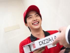 宅配ピザチェーン店のバイクデリバリースタッフ