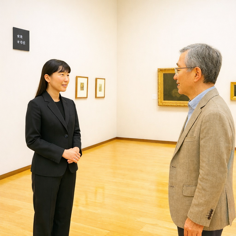 高級アパレルブランドの展示会での案内スタッフのリーダー