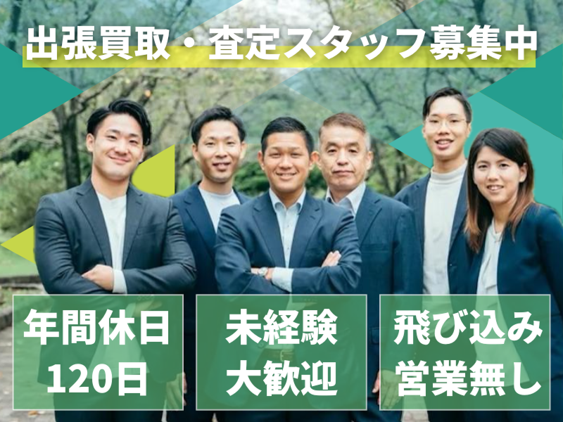 アピールポイント: 【1】未経験大歓迎! 先輩社員が1から丁寧に指導します。 知識と経験を積みながら成長しましょう! 【2】飛び込み営業などの新規開拓なし アポイント取得は、お客様対応専門の部署がおこなうため、 買取スタッフが飛び込み営業・テレアポ・チラシ配りなどの 新規開拓をおこなうことはありません! 【3】プライベートも大事にできる働き方 ・年間休日120日! ・完全週休2日制(土日祝) ・長期休暇もあり! 仕事を頑張りながら プライベートも充実できます! 【4】インセンティブで高収入GET 頑張りはしっかりとインセンティブとして 賞与にプラスして還元します! 年に1度、評価があるので昇給や昇格もわかりやすく、 モチベーション高く頑張れます! また、キャリアアップのチャンスも多いです◎ \キャリア例/ 1年目:営業職 2年目:営業職リーダー 3年目:支店長 ★頑張り次第で短期間で昇進も目指せます!