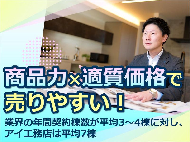 仕事内容 \\売れる×稼げる!その理由とは…// ⭐圧倒的な商品力に裏付けられた 最強のコストパフォーマンス! ・国が定める住宅性能評価において 耐震や断熱など8項目で最高等級に該当 ・住宅価格が高騰するなか、品質の高い 住宅を比較的リーズナブルに提案可能! 「この品質でこの価格なら・・・!」と お客様の納得感が引き出しやすいんです♪ ⭐実際に売れているメンバーが多数! 1人あたり年間契約棟数が業界平均3~4棟 といわれているなかで、当社は平均7棟! 業界平均の4棟以上販売ができている 営業メンバーが2/3以上! ⭐明確な評価基準で実力主義! ・契約1件ごとにインセンティブ支給◎ ・年間契約額が目標超えでボーナス追加 ・売れた棟数・金額で給与・役職決定 (経験・社歴問わず公正に評価します) ・入社数年で年収1000万円以上も可能! ▛▝▝▝▝▝▝▝▝▝▝▝▝▝▝▝▝▝ ▜ ✨売れる商品×明確な評価基準✨ だから稼げる!!! ▙ ▖▖▖▖▖▖▖▖▖▖▖▖▖▖▖▖▖▟ ||◤ 仕事内容について ◢|| 当社の住宅営業は、展示場来場者への 100%反響型営業です。 毎月のノルマ設定なしで、 飛び込み営業も一切ありません◎ <具体的な業務の流れ> ✅展示場に来場されるお客様をご案内 ✅具体的なご要望(予算や設計)の確認 ✅最適なプランのご提案 ✅資金計画や住宅ローンに関する ご相談への対応・資料作成 ✅成約後、設計担当~施工管理担当への 引継ぎ ✅住宅完成後、お客様への引き渡し ・アフター訪問 ⏩当社の営業スタイルの特徴は、 ご要望のヒアリングから物件のお引渡し まで、一貫してお客様に寄り添った 営業を行います! 他社では分業が多い業務を、 当社では営業担当が一気通貫で 担当しています。 ⏩業界経験がなくても、 イチから丁寧に指導します◎ 研修体制が整っており、最初は先輩の営業 活動に同行することからスタートします。 お客様との接し方や提案のノウハウなど、 実践的なスキルを間近で着実に 学ぶことができます。 ||◤ 当社の強み ◢|| ⭐成長企業で将来性抜群! ……………………………………… 14年連続増収・増益を達成中! ※2025年6月にて売上2,010億円 全国300ヶ所以上に展示場があります。 今後も拠点数は増やしていく予定! ※2026年6月末までに330拠点予定 ⭐商品力×適質価格!!! ……………………………………… 当社ではお客様の予算に合わせて 住宅性能(耐震・断熱など)を 下げる提案は行いません。 国が定める性能評価の最高等級に 相当する高性能を標準搭載したプランを 比較的リーズナブルな価格でご提供。 また、お客様の希望を1cm単位で 実現できる柔軟な自由設計も特徴的。 コスパ◎性能◎デザイン◎だから 自信をもって提案できます♪ ⭐地域密着×転勤なし! ……………………………… 住宅の営業活動において 「その地域について知っていること」は 非常に大きな価値になります。 実際にその地域で暮らす営業にしか できない提案がある、そんな考えから 当社の営業は【転勤なし】 引き渡し後もお客様と長く付き合え、 紹介受注にも繋がりやすい環境です。 ⭐デキる営業が自然と集まる環境! ……………………………………………… 「良い商品」に加え、「働きやすさ」と 「正当な評価制度」が揃っているのが 当社の自慢です。 業界トップクラスの転職者や未経験から 成長した若手まで、優秀な仲間と 切磋琢磨しながら成長できます◎ ||◤ワークライフバランスも◎◢|| ・完全週休2日制 ・年末年始休暇14日間など休暇制度◎ ・育休取得実績ありで安定して働ける ・不必要な社内会議は削減◎ ・顧客管理など営業の手作業を自動化♪ ✨✨ ✨先輩社員インタビュー ✨✨✨ ⏩入社5年目・Bさん 以前働いていた会社は、 年齢や社歴が優遇される評価制度で、 頑張っても実力を認めてもらえない もどかしさを感じていました。 今は公正な評価制度があるので 実績を上げた人が昇格し、 しっかり稼げるシステムになっています。 収入も大幅にアップしました。 ⏩入社3年目・Cさん 転職のきっかけは地元に 当社の新拠点ができたことでした。 ここにはスキルも志も高い仲間が 集まっているので、毎日刺激があります。 成長できる環境が整っていることに 感謝し、更なる高みを 目指していきたいと思っています。