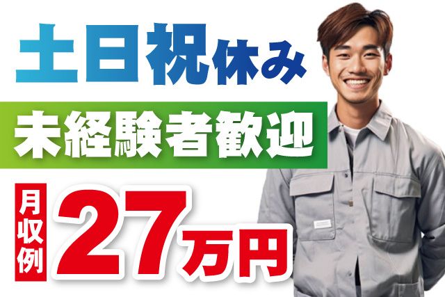 仕事内容 急募!人気の日勤!高時給! 資格不問で未経験OK! 20~40代の男性が活躍中の職場。 長期安定勤務が可能です。 (このお仕事のポイント) ・働きやすい日勤 ・土日祝休み ・資格や経験不問 ・月収27万円可能 ・男性活躍中 ・休憩室完備 ・お弁当持参可 (主な仕事内容) 日常プラント工事の安全管理 ・現場パトロールやそれに関わる資料作成、 計画立案、会議出席、日誌作成等 ※事務所内でのPC(パソコン)操作がメインのお仕事 (希望すれば週払いにも対応可能!) 働いた分の給与を一週単位でお支払いすることが可能です。 何かと入り用な時期や冠婚葬祭など急な出費があっても安心です。 ※給与支払いの週は除く ・上限20,000円まで。 ・条件…月~金 無欠勤で20,000円 1日欠勤で15,000円 ・週払いの開始や中止は連絡頂ければ いつでも可能 ・週払い希望を定期的に申し込んでない方も 限度額内であれば、来週だけ週払いを 希望したい等の要望にも対応致します。 【他にもお仕事情報公開中】 https://entori.jp/kyouritsu