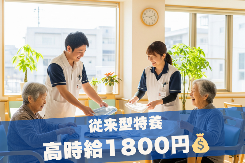 仕事の内容 \高時給1800円!週4日~OK&残業少なめ◎/ 埼玉県蕨市エリアの特別養護老人ホームにて、介護スタッフを募集します。 定員50室の従来型施設で、フロアごとに担当(20~30名)が決まっています。記録はタブレットやPCで行うのでスムーズです。 履歴書不要で即日勤務も可能!ブランクがある方も安心の研修制度をご用意しています。 週4日~勤務OKで、家庭の都合によるお休みにも柔軟に対応。 車・バイク通勤OKで駐車場も無料! 【お仕事内容】 従来型特別養護老人ホームでの介護業務全般をお願いします。 ・食事、入浴、排泄などの身体介助 ・レクリエーションの企画、実施 ・見守り、ナースコール対応 ・ご利用者様の生活支援(清掃、洗濯など) ・記録業務(タブレット/PC使用) 【こんな方におすすめ✨】 ✅介護福祉士などの有資格者の方 ✅即日スタートをご希望の方 ✅家庭と両立しながら働きたい主婦(夫)さん ✅PCやタブレットでの記録に抵抗のない方 ✅40代・50代・60代で介護現場の経験を活かしたい方