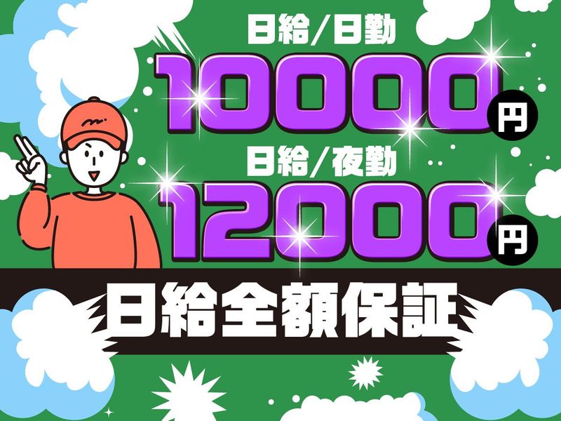 日給10,000円以上 給与詳細 基本給:日給 1万円 〜 固定残業代:なし 【一律手当】 全員に一律で支払われる通勤・皆勤・家族手当金額:なし 全員に一律で支払われるその他手当金額:なし 【日勤】1万円~ 【夜勤】1万2000円~ ★早上がりでも全額日給保証!★ ★日払いOKで翌日収入GET!★ 【給与例】 給与例 ◆週5日/夜勤のみ ・日給1万2000円×22日 ⇒月収26万4000円 ◆週3日/日勤のみ ・日給1万円×12日 ⇒月収12万円 ◆週3日/日勤&夜勤 ・日給1万円×6日 + 日給1万2000円×6日 ⇒月収13万2000円 ※上記目安金額となります。