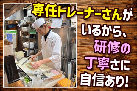 仕事内容 【キッチンスタッフ】 簡単な調理や盛り付け、洗浄業務等、調理補助全般をお願いします。 初めは包丁を使わない簡単な盛り付け等からスタート! 覚えやすいお仕事から順番にお教えしますので安心して始めてもらえます! 慣れてきたら「この野菜をこうやって切ってね!」と優しく教えてもらえます♪ 【未経験から始め易いと大人気!】 専任トレーナーさんがいるから、研修の丁寧さに自信あり!未経験でも安心♪ 不安な気持ちにならないよう、サポート体制万全!自信に繋げた後にデビュー♪ その後も優しい先輩や社員さん(※本当に優しいです)がいるのでご安心下さい! 慣れるまで何度でもサポートします! 【温かくて楽しい雰囲気で働きたい方はぜひ♪】 笑顔が素敵&気配り上手な店長は私達と 歳が近く気持ちをすごくわかってくれる♪ 初めて1人で料理をお持ちできた時も一緒に喜んでくれたり! 他店のスタッフでファンもいる程の、 お姉ちゃん的存在の女性店長と一緒に楽しく働きませんか♪