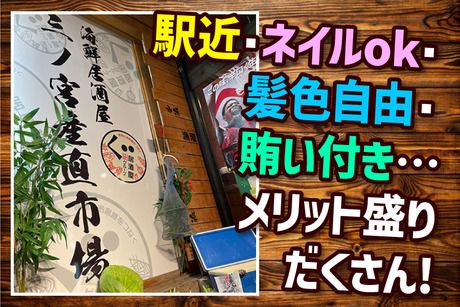 その他 友達と応募OK、履歴書不要 【ブランド名】 産直市場 【事業内容】 海鮮居酒屋の運営
