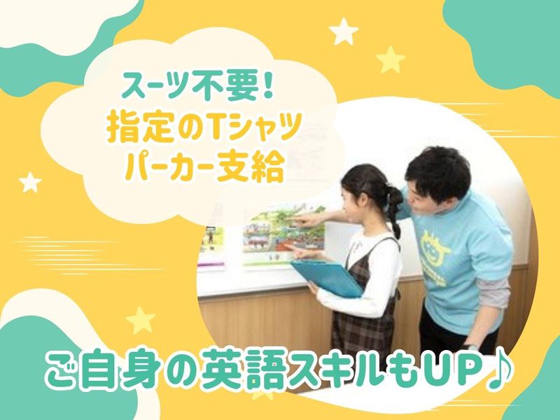 仕事内容 ■アピールポイント  ̄ ̄ ̄ ̄ ̄ ̄ ̄ ̄ ̄ ✅週1日~OK! 学業・プライベートと両立できます! ✅「水曜日」か「木曜日」 いずれかに勤務できる方、積極採用! ✅未経験OK!丁寧な研修があります! ✅スーツ不要! 指定Tシャツ(パーカー)支給! ✅日本語でのコミュニケーションが取れる方 ※業務上、日本語でのコミュニケーションが必要なため ■具体的な仕事内容  ̄ ̄ ̄ ̄ ̄ ̄ ̄ ̄ ̄ 中学生を対象に 最大8名の少人数クラスで、 英文法や英検対策の授業を メインにお願いします。 「先生わかった!」と言われた時の 喜びはこのバイトならではです。 ■ユニバーサルキャンパスについて  ̄ ̄ ̄ ̄ ̄ ̄ ̄ ̄ ̄ ̄ ̄ ̄ ̄ ̄ ̄ ̄ ユニバーサルキャンパスは 「みんな英語が大好きに!」が モットーの英会話教室です。 生徒さんは 小・中学生が中心です! ■未経験の方も大歓迎  ̄ ̄ ̄ ̄ ̄ ̄ ̄ ̄ ̄ ̄ ・授業の準備の仕方 ・授業のながれや進め方 など、未経験の方も 安心して始められるように 1つずつ丁寧に研修を行っています。 先輩たちがしっかりサポートするので 分からないときや不安なときは 相談しながら少しずつ 慣れていただければOKです! ■1日の流れ(例)  ̄ ̄ ̄ ̄ ̄ ̄ ̄ ̄ 17:00~ まずは着替えて授業準備を行います。 そして時間になったら、授業スタート! 明るく元気に指導をお願いします。 20:50~ 授業レポートを記入・報告 21:00 退社 出勤時間によっては授業前に 子供たちとコミュニケーションをとったり、 事務作業のお手伝いなどを お願いすることもあります*