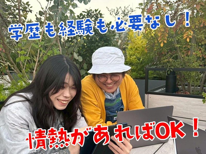 求めている人材 未経験歓迎!★学歴・経験一切不問! 「今の自分を変えたい」という 熱量採用です! <必須> ・週4日以上勤務できる方 <歓迎> ☆明るい対応ができる方 ☆誰とでもコミュニケーションが取れる方 ☆何かに打ちこんでいる方 ☆将来の夢・目標のためスキルを学びたい方 ☆ハローワークで求職中の方も歓迎 その他にも…――――――――――― 動画編集、映像編集、YouTube、 SNS、TikTok、after effects、 Webデザイナー、動画制作、副業、 SNS運用代行、髪色自由、ネイルOK YouTube編集者、SNS動画クリエイター、 Premiere Pro など興味がある方大歓迎! ―――――――――――――――――