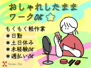 こつこつ&ルーティン作業が好きな方にピッタリ!座り作業メイン◎日勤/土日祝休み/月収24万円可◎決まったことだけだから未経験OKの軽作業!