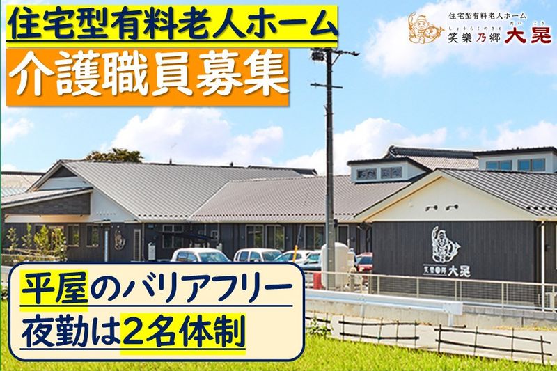 【仕事内容】 介護職員募集!入居施設未経験の方も、ブランクある方も安心してご応募ください!研修制度・教育制度が整っています。 オープン2周年!まだまだ新しい施設の介護スタッフの募集です! \ブランクや自信が無い方も安心サポート充実/ 全員が自信を持って介護業務を一緒に頑張れるようサポートさせていただきます! ご利用者様に寄り添った柔和なケアができる環境です。 ■具体的な仕事内容 ナーシングホームにおける入居者様の介護業務全般をお願いします。 ・食事や入浴、排泄の介助 ・バイタルチェック ・レクリエーション ・利用者様の巡回と安否確認 ・介護記録 ・起床時の介助やお手洗い誘導 など(※2名体制の夜勤です) ●ナーシングホーム笑樂乃郷 大晃(しょうらくのさと だいこう) 大晃グループでは、介護・看護・事務すべての職種で有給休暇が「半日単位」から取得可能です。 お子さまの学校行事や急な用事にも合わせて柔軟にシフトを調整できるので、子育て中の方も安心して働けます。 また、私たちの合言葉は「助け合い・支え合い」。 スタッフ同士が自然とフォローし合える風土があり、実際に多くの子育て中のママがイキイキと活躍しています。 ●実務未経験の方も歓迎です 先輩スタッフが、一から丁寧にサポートします。ブランクのある方も、もちろん安心して働けます。 ●キャリアアップも可能です 経験やスキルに合わせて給与UPのチャンスあり!昇給・賞与や手当も充実しています。 ●お気軽にお問い合わせください。 ぜひご応募くださいね。 いきなりの面接は不安な方には施設見学も大歓迎です。 働き方の相談や、仕事内容のご質問などのお問合せもお気軽にご連絡ください。 入職時期が2、3ヶ月後の方も遠慮なく、施設見学承っています。先ずはメールでお問い合わせ下さい。 必要人員が採用出来次第、募集を締め切りますのでお早めにご応募お待ちしております。 【求人ID-DKS5】