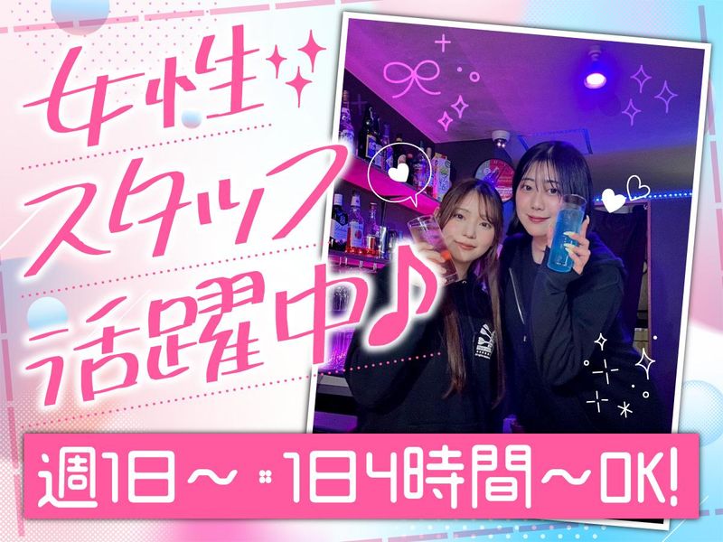 求めている人材 未経験者歓迎! 学生・フリーター歓迎! Wワーク歓迎! 大学生活躍中! 初バイトにもぴったり! ★「未経験だけど接客してみたい」「空いた時間でちょっと稼ぎたい」など歓迎! 友達同士の応募&勤務も歓迎♪ ★お酒が飲めなくても大丈夫! お酒好きのスタッフもいますが、 お酒が得意じゃないスタッフも活躍中です。 人と話すことに慣れるための社会勉強がしたくて始めた方もいます。 お酒好きのスタッフは、お客さんにご馳走になって一緒にカンパーイなんてこともあります♪ ★店内はお洒落な雰囲気◎ ダーツが2台あったり、その他楽しめるアミューズメントもあります。