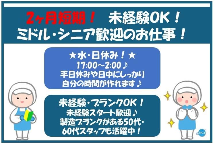 2ヶ月短期 幅広い年齢層が活躍中 未経験歓迎!