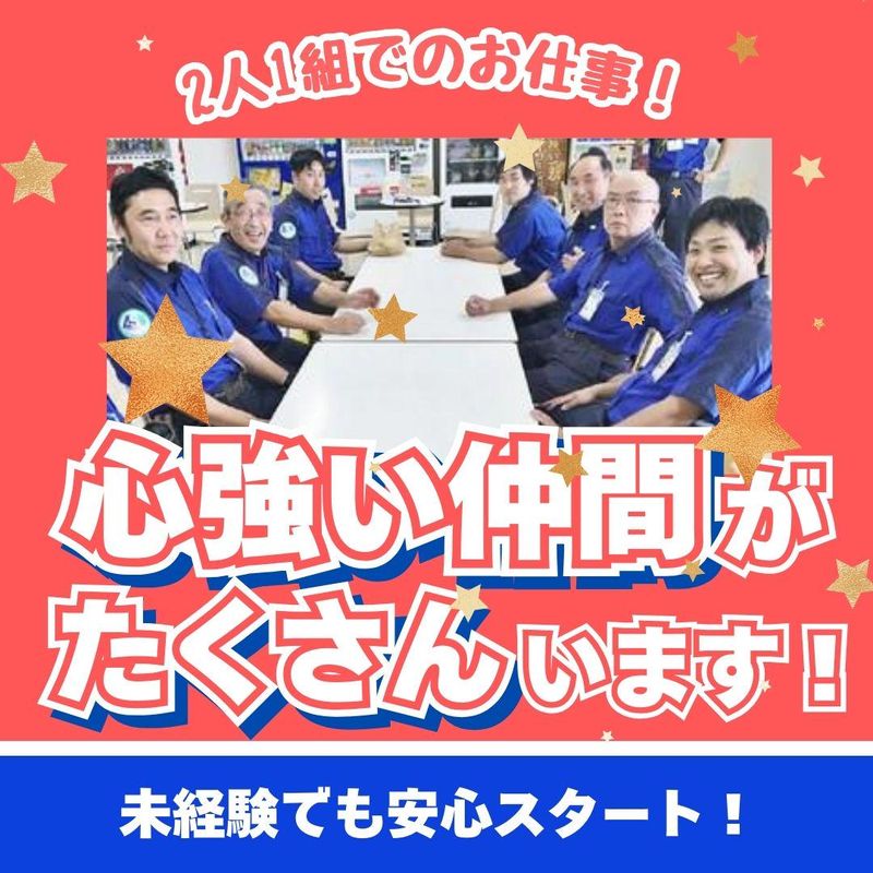 職場環境 お客様の売上金や貴重品を お預かりしているので、 常に緊張感はありますが、 移動中や休憩中は他愛もない話をしたり 社員同士の距離も縮まりやすい環境です! 未経験から始めた先輩も 多数活躍しているため、 丁寧ににサポートしてくれます。