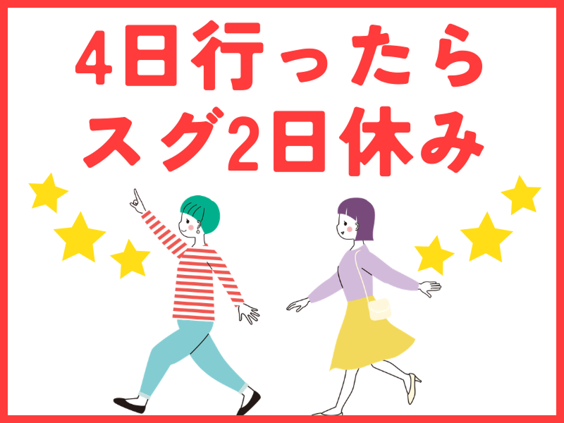 4回行って2回お休みでワークバランスが取りやすい働き方ができるお仕事です◎