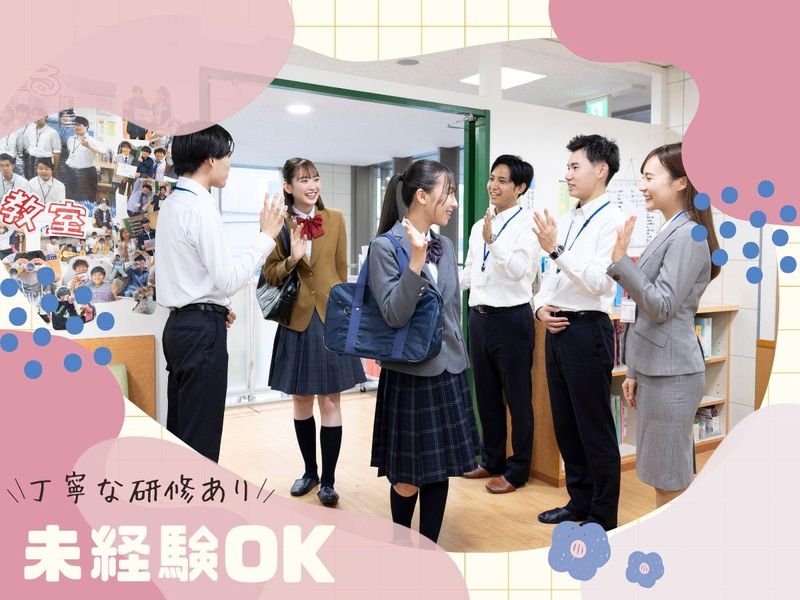 職場環境 未経験から始めた 大学生が多数活躍中! アルバイト自体が 初めてという方も大歓迎です! 「勉強は好きだけど、 人に教えたことがなくて心配」 という方も心配不要! まずは1日の流れや授業の進め方など 丁寧な研修からスタートします! 喫煙所:なし(敷地内全て禁煙)