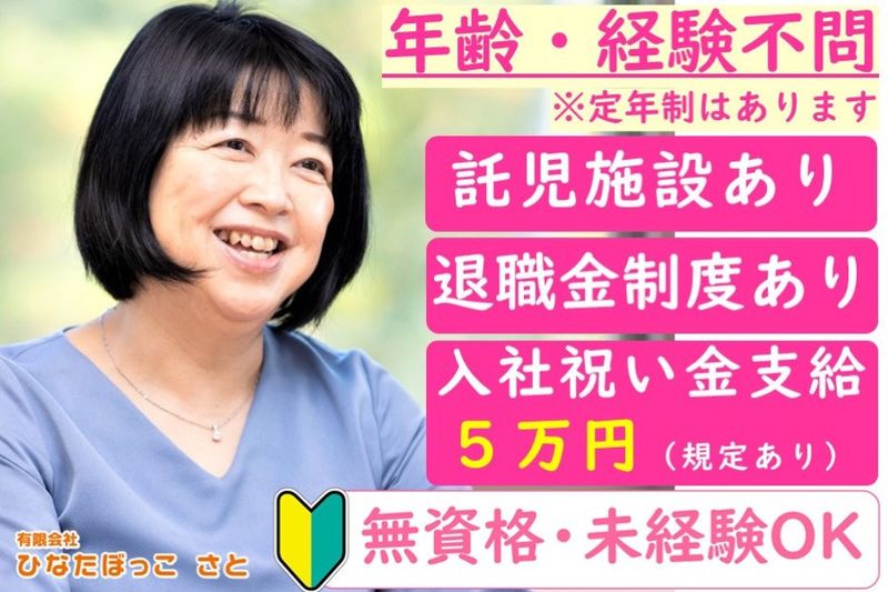 無資格・未経験の方大歓迎!ブランクある方大歓迎!◎入社祝い金5万円支給(規定あり)●完全週休2日制!●丁寧な研修・フォローあり!●退職金制度あり!●子育ても応援!●保育園完備●保育料の補助あり